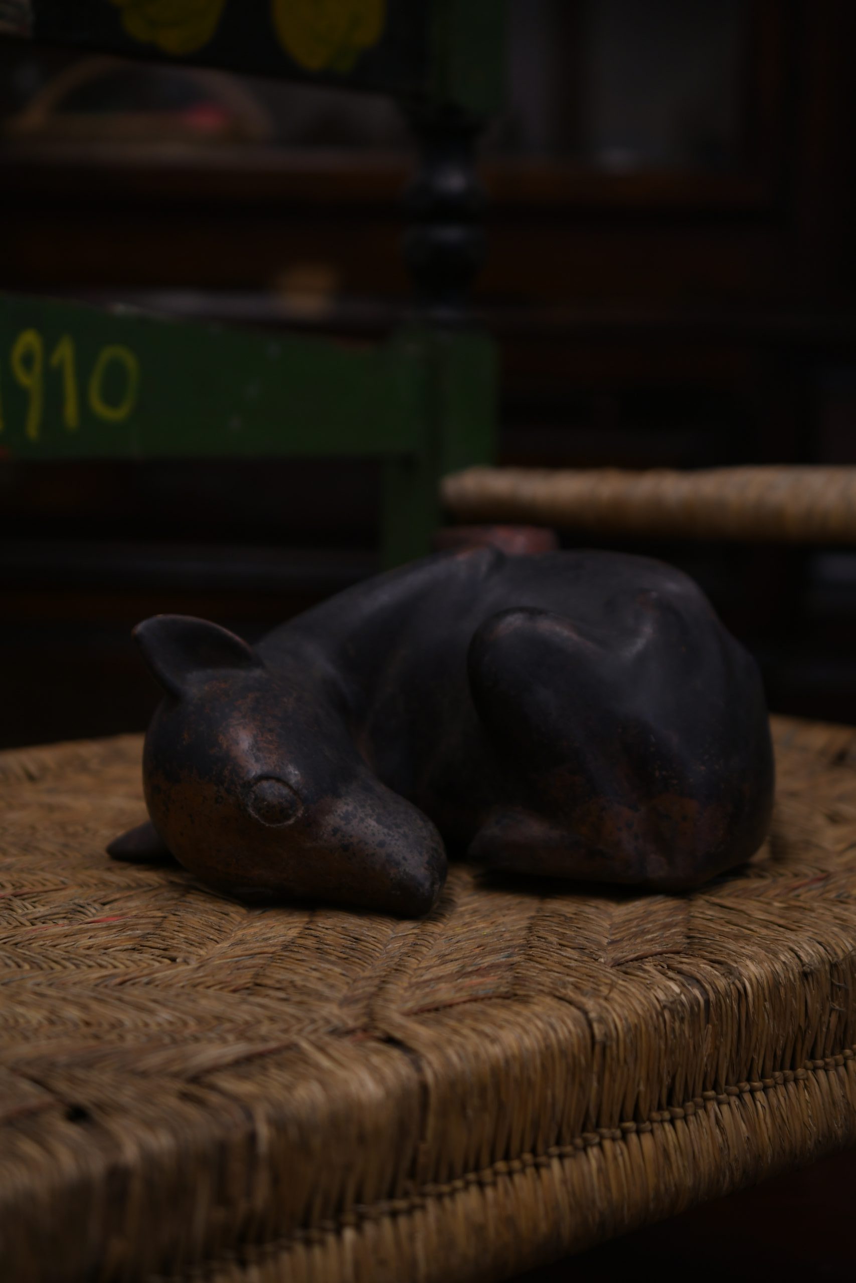 Pre-Hispanic piece in the shape of a dog accompanying Frida’s ashes on her altar
