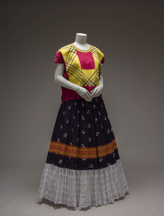huipil—allowed Frida to wear her often intervened orthopedic corsets to support her back beneath them, giving her a degree of comfort.