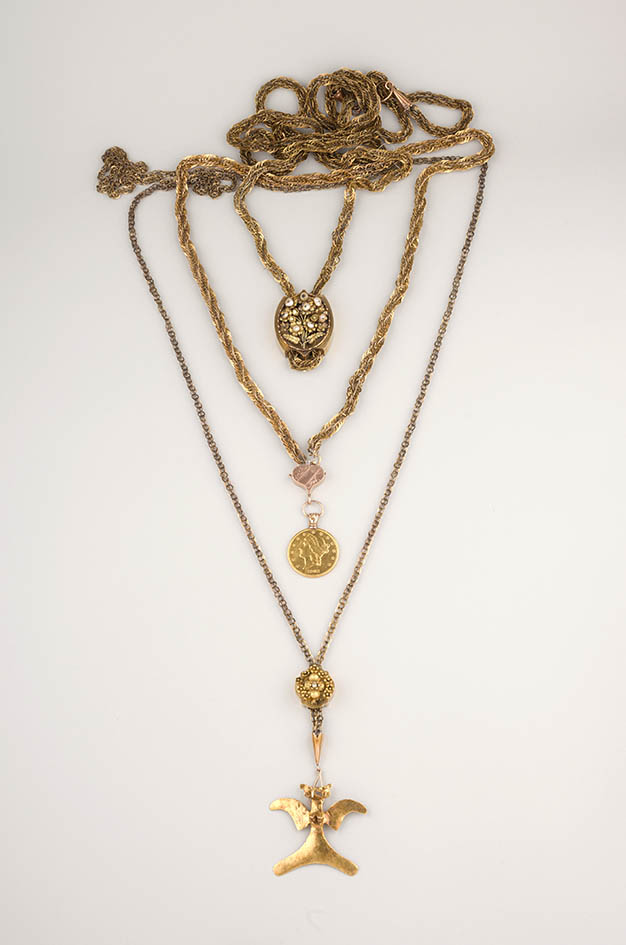 This solid gold necklace is composed of pendants from different origins. Frida combined them into a single piece because her creativity spilled over into everything she touched, from clothing to jewelry. So, Frida often created new accessories using different pieces that she received as gifts.